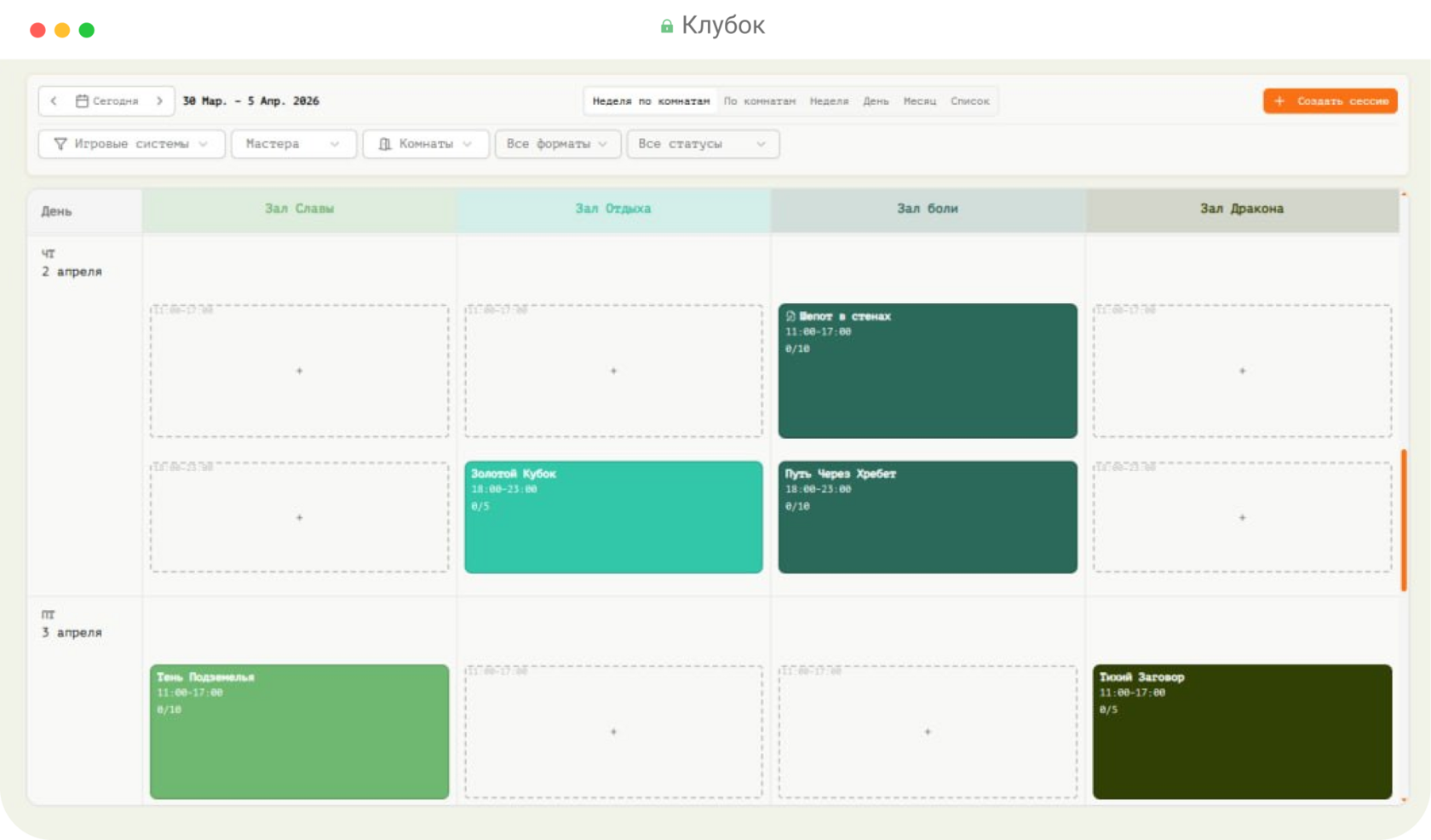 Если у вас не только DnD — всё равно подойдёт. Управляйте бронями, залами и событиями в одной системе